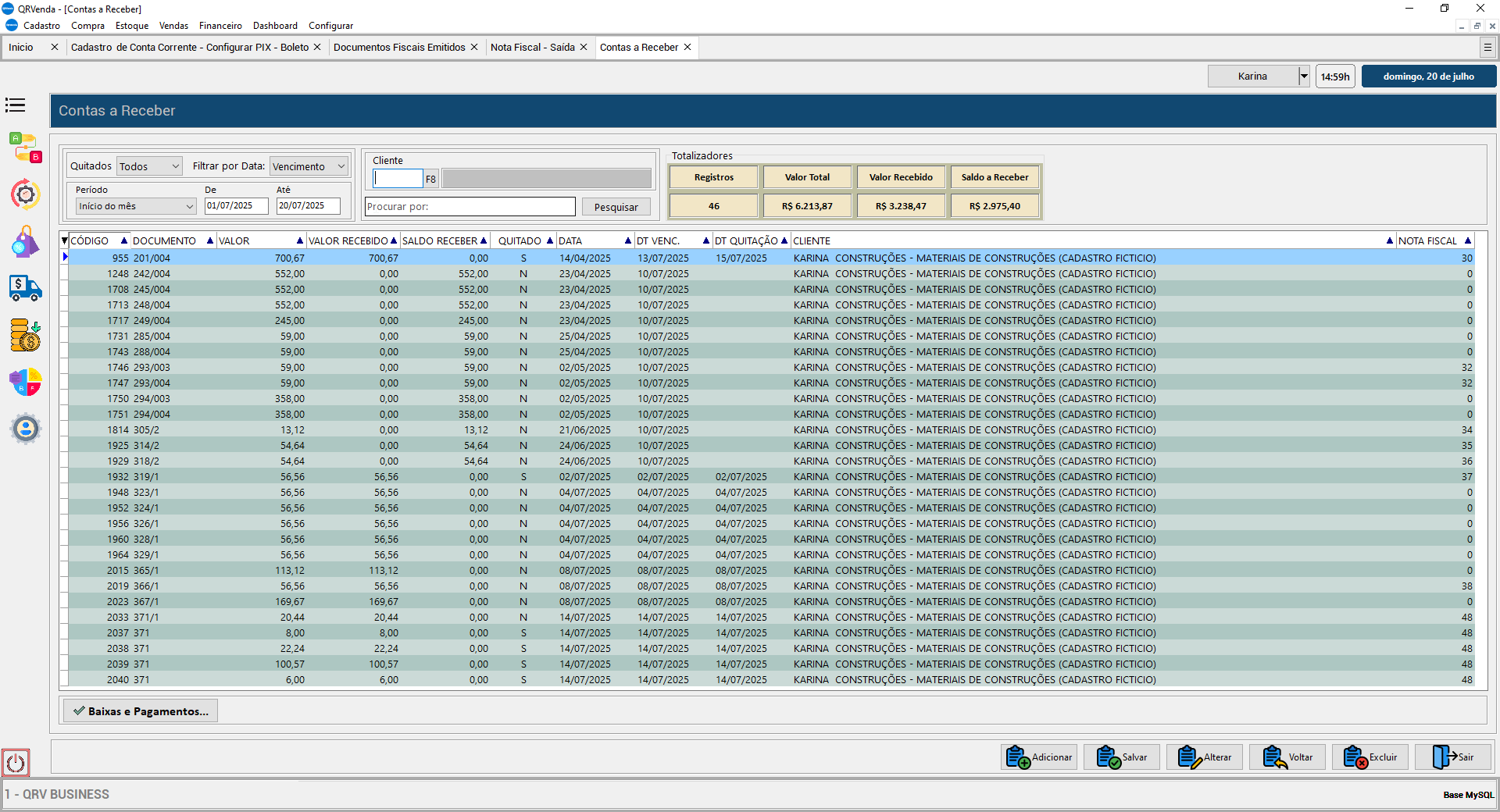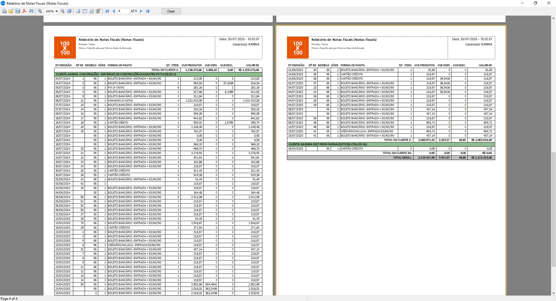 Todos os relatórios seguem o mesmo padrão visual, com FastReport VCL. Seu cliente visualiza os dados por filial ou agrupados, com rapidez e estrutura para tomada de decisão.
