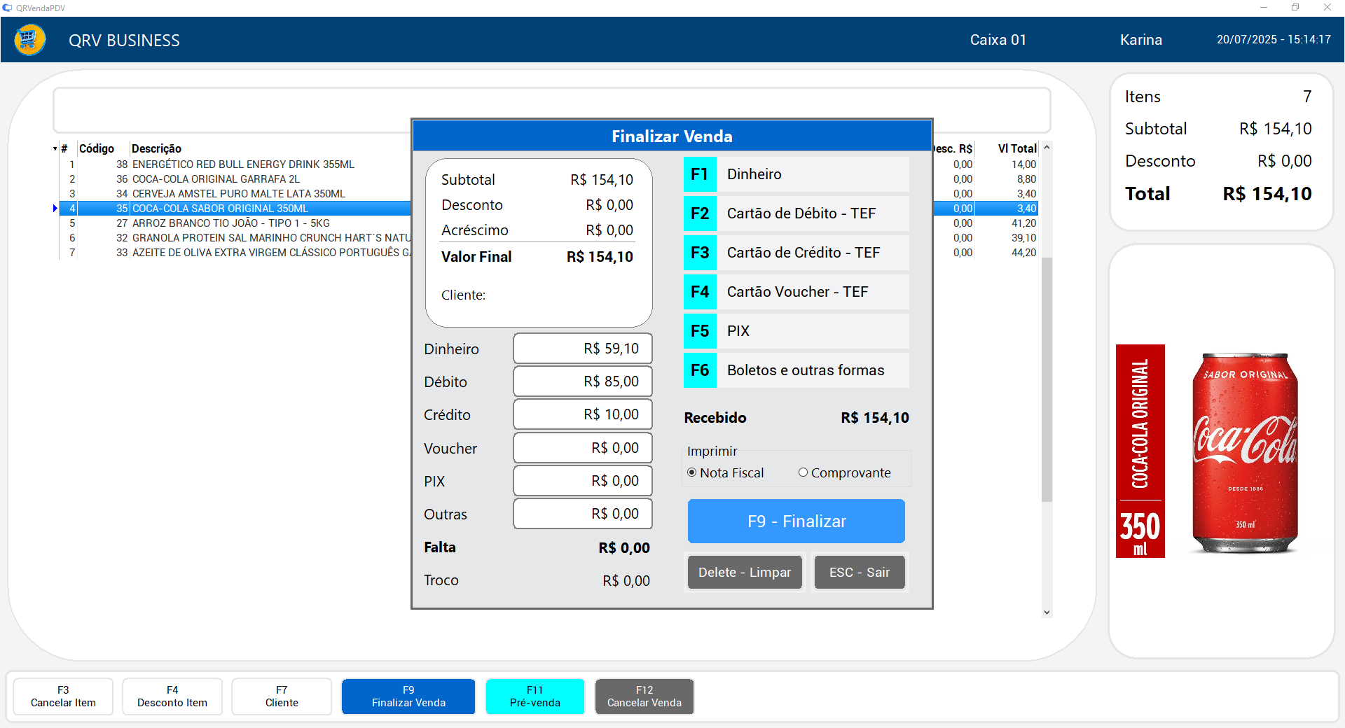 Seu cliente vende com mais agilidade e segurança. O sistema já vem com TEF integrado para cartões e suporte total ao PIX (dinâmico ou estático). Tudo pronto para usar no dia a dia.